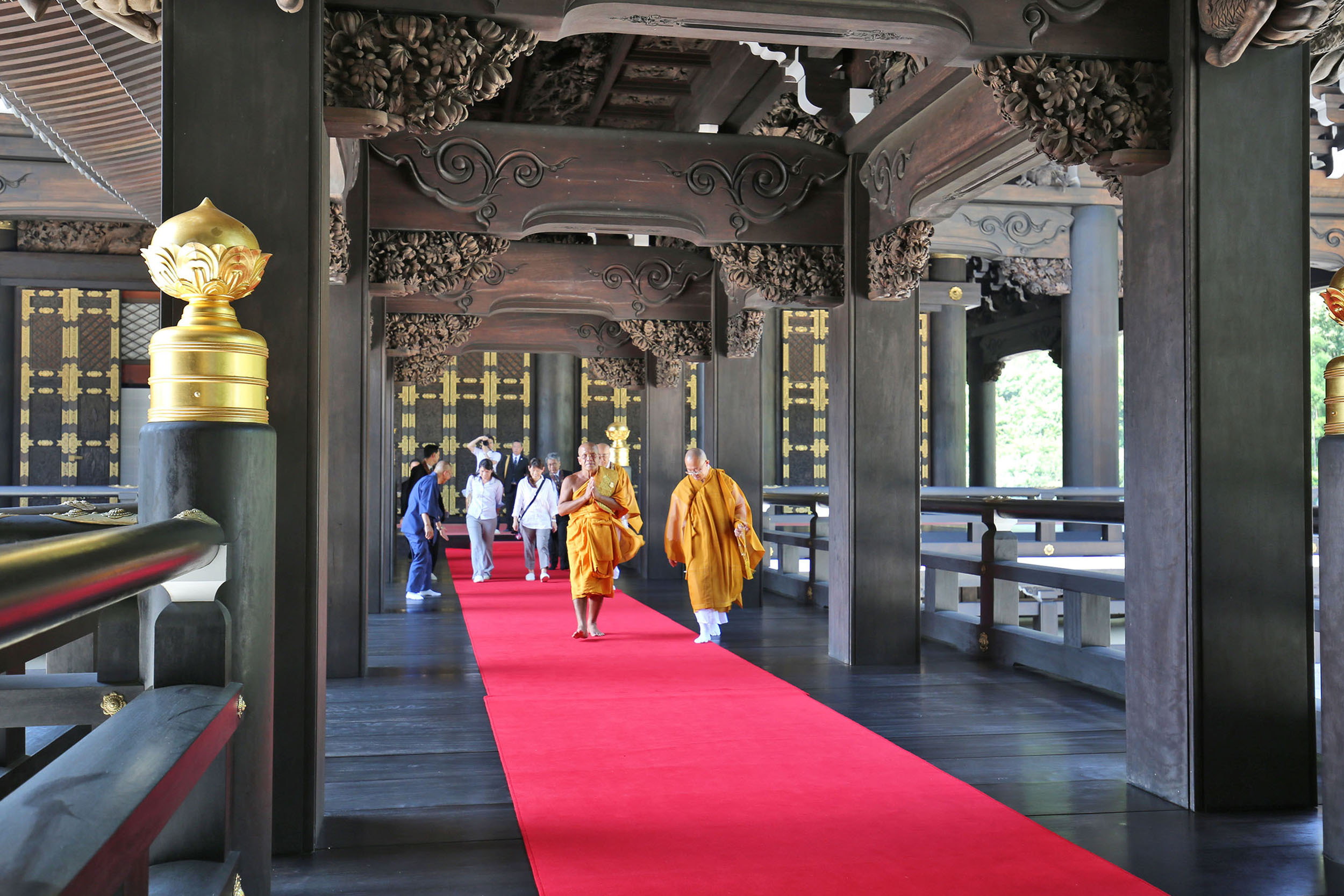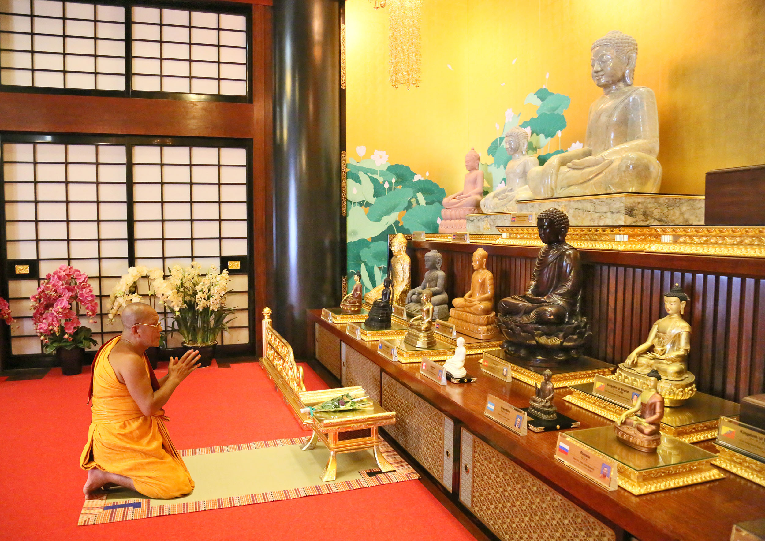 故シアヌーク前国王陛下 シハモニ国王陛下の奉納仏を始めとする 世界各国の奉納仏に 合掌礼拝される