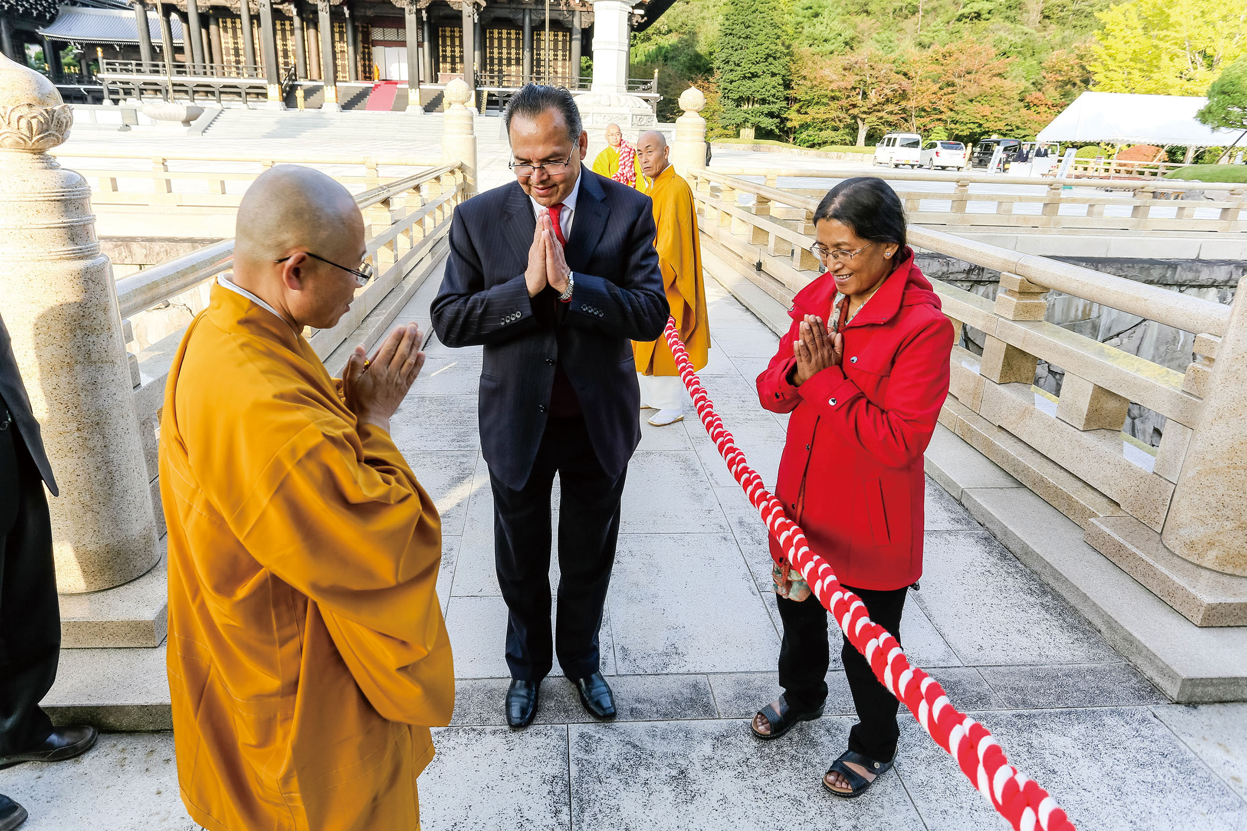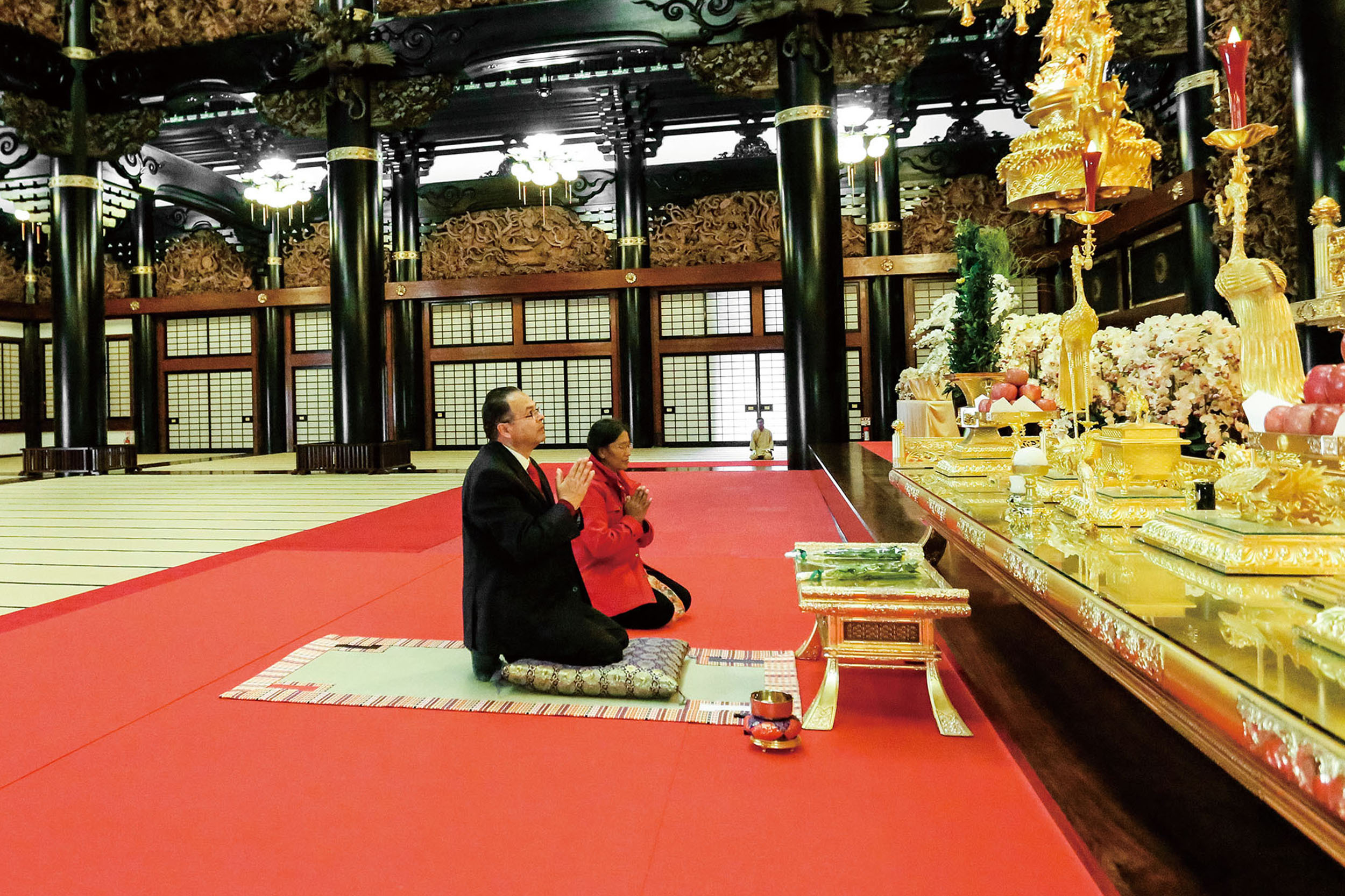 釈尊 御生誕の地であるルンビニーを有するネパールより、 第 58 代 首相 ジャラ・ナート・カナール閣下 御夫妻が、 佛教サミット ネパール代表 大僧正猊下の御紹介により、初めて総本山「佛教之王堂」に参詣されました。