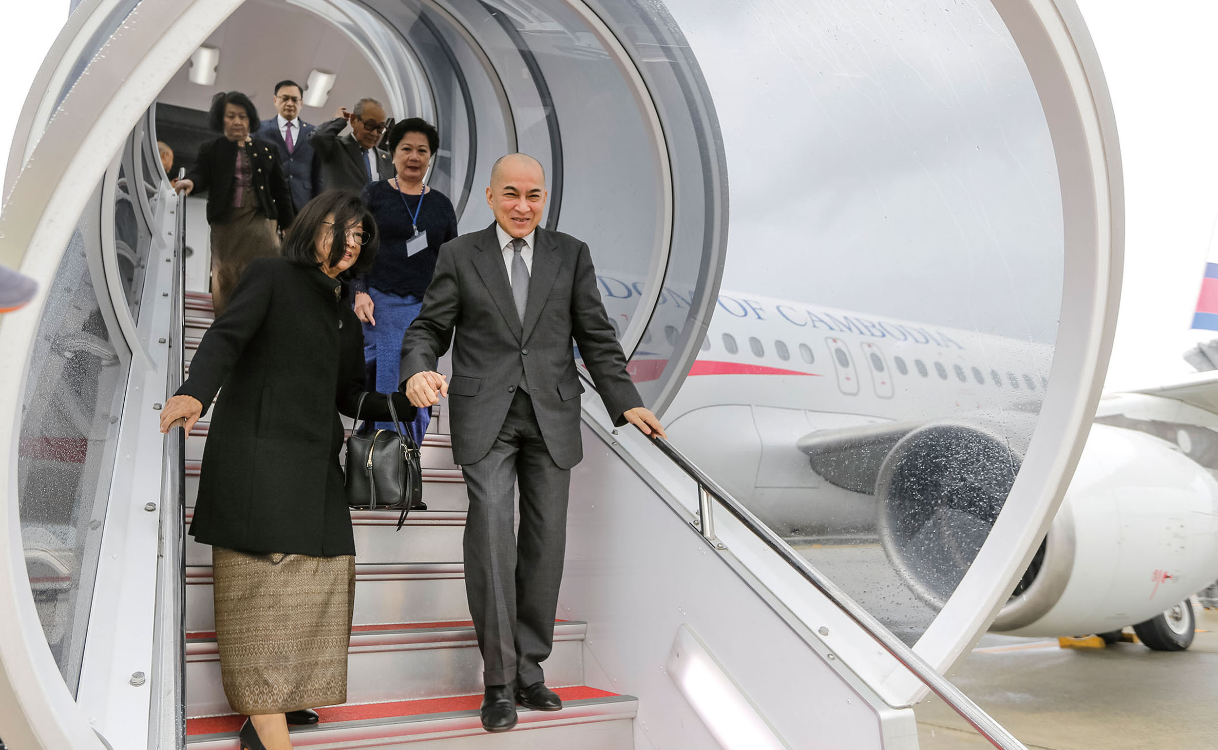 シハモニ国王陛下と共に降り立たれたのは、国王陛下 御令姉であり、国王陛下諮問委員を務められる ノロドム・ボパ・デヴィ王女殿下、副首相 兼 宮内庁長官 コン・サム・オール閣下、国王陛下諮問委員 兼 駐中国カンボジア王国特命全権大使 ケック・シソダ閣下、及び、国王陛下諮問委員 兼 国王陛下官房局長 スレイ・ノリー閣下を始めとする随行団です。