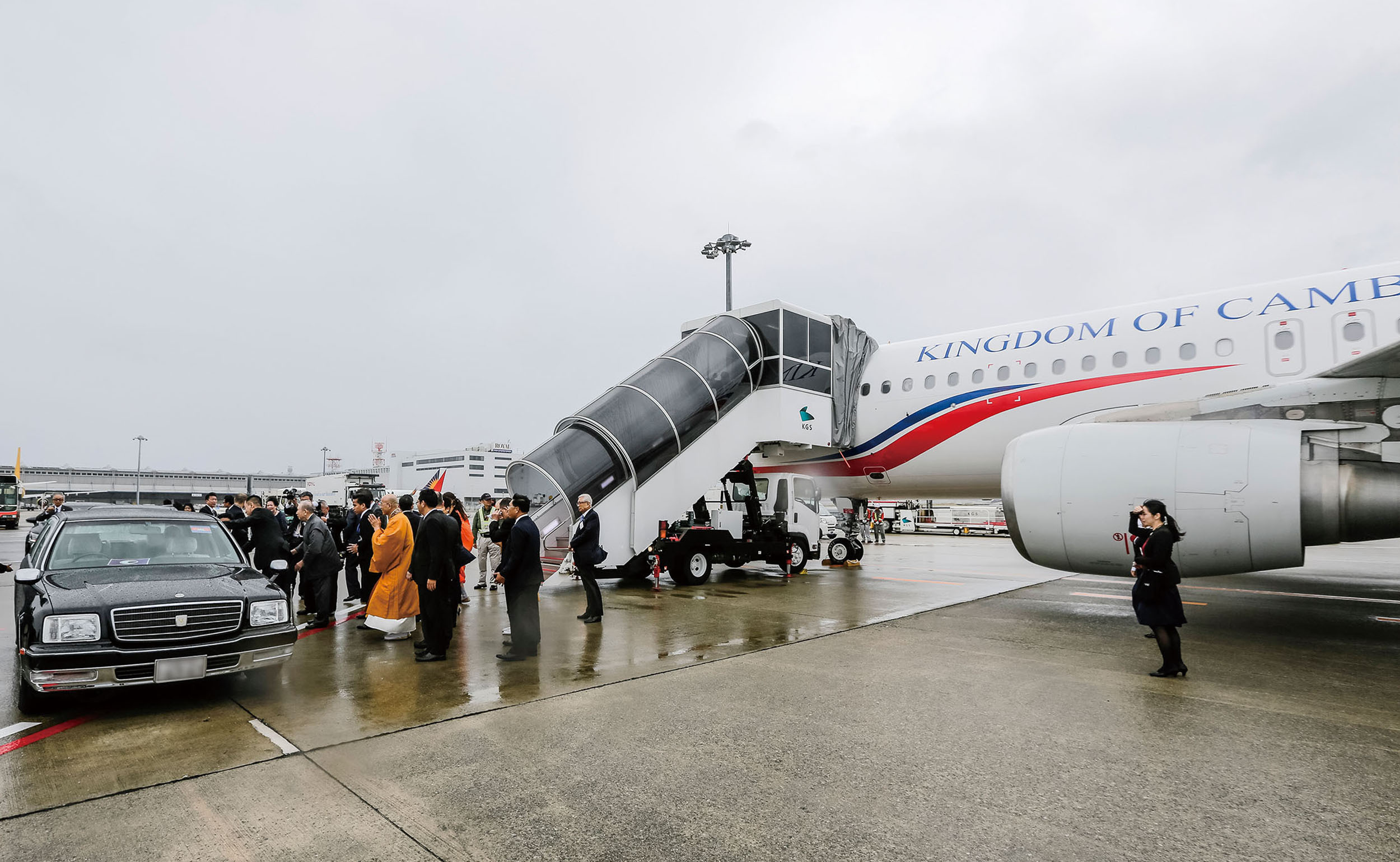 カンボジア王室専用機にて 関西国際空港に降り立たれる
